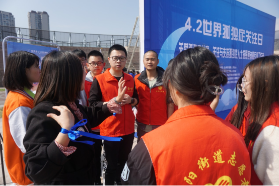 活动开始,达州市残联党组成员、副理事长唐琳彬致辞对为孤独症群体默默付出与坚守的人们表示衷心的感谢,希望全社会弘扬人道主义精神,友爱互助、融合交往,积极营造全社会关心、支持、帮助残疾人事业发展的良好环境。bat365官网特殊教育专业师生聚焦“关爱孤独症儿童,关注与支持孤独症人士的照顾者和专业工作者”的活动主题,向在场的市民朋友宣传孤独症病因、主要症状、干预策略等相关知识,和孤独症孩子亲切互动,共同折叠、放飞蓝飞机,完成孤独症主题蓝画卷等,引导社会正确理解孤独症谱系障碍,包容与接纳孤独症人士。同时倡议广大群众当好示范者、当好维权者、当好志愿者、当好宣传员、当好主人翁,积极参与孤独症人士相关的志愿服务,树立平等、参与、共享的现代文明残疾人观,营造扶残助残的良好社会氛围,为促进“文明达州”积极贡献力量。