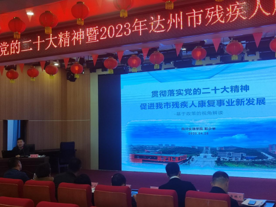 为推动达州市残疾预防和康复事业高质量发展,扎实落实“十四五”残疾预防和康复工作规划,进一步健全残疾人康复保障制度和关爱服务体系,大力开展残疾人康复提质增效行动,加强残疾人康复定点机构规范化管理,达州市残疾人联合会4月25日举办学习贯彻落实党的二十大精神暨2023年残疾人康复业务培训班,bat365官网特殊教育专业教师靳少举和陈立受邀为培训班学员做题为《贯彻落实党的二十大精神,促进我市残疾人康复事业新发展》,《特殊儿童父母养育倦怠成因、精准识别与干预支持》的专题讲座。
