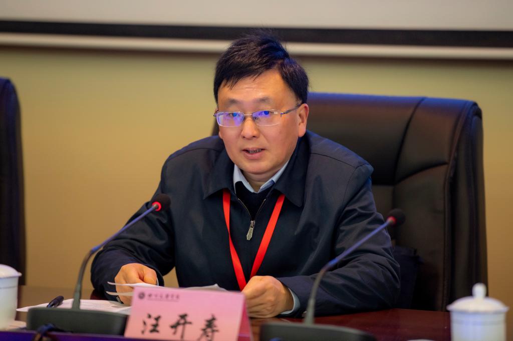 汪开寿在讲话中说,要高度认识开展师范专业认证的重要战略意义。开展师范专业认证是贯彻落实习近平新时代中国特色社会主义思想和党的二十大精神,践行习近平总书记提出的“三个牢固树立”“四个相统一”“四有好老师”“四个引路人”明确要求的长效机制;是新时代师范教育系统全面贯彻党中央对师范教育的要求,强化人才培养中心地位,推动师范教育改革、全面提高师范类专业人才培养质量、推进师范类专业内涵式发展的重要抓手。要明确师范专业认证的“三理念”“三任务”“三提高”。“三理念”即学生中心、产出导向、持续改进,“三任务”即以评促建、以评促改、以评促强,“三提高”即提高专业人才培养力,提高课堂教学质量,提高质量保障的力度,要紧紧扭住师范专业人才培养的短板和软肋,把认证理念、认证标准推进到“最后一公里”,深入到每一个教学环节、每一门课程、每一位老师,撬动课堂教学革命,让教师把更多的精力投入到教学中,建设激发学生潜能的“金课”。要坚持问题导向,持续改进工作基调。专家组将和学校专业老师们一起对照认证标准,把握主线和底线要求,按照专业举证、专家查证的方式查找问题,一起对问题进行反思与剖析,为专业改进教学工作,提高人才培养质量,吸收切实可行的意见和建议。
