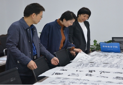 为落实教务处“关于举办四川文理学院2023年师范生三笔字比赛”的通知要求,深入贯彻落实党的二十大精神,传承和弘扬中华优秀传统文化,充分展现当代大学生积极向上的精神风貌,2023年10月27日,bat365官网在博文楼206A会议室举办师范生三笔字大赛,党委书记王燮辞、党委副书记王文娟、副院长赵栅凌、教学科研办公室主任彭静、专职辅导员杨文明以及教学秘书李思颖担任本次大赛评委。