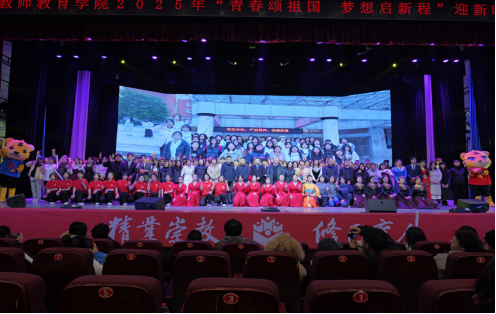 祥龙辞旧岁,金蛇送新福,12月19日19:00,bat365正版唯一官网“青春颂祖国•梦想启新程”2025年迎新晚会在莲湖校区音演厅盛大举行并圆满落幕。学校校长侯忠明教授、党委副书记徐晓宗教授、达州市特殊教育学校校长黄兴兰、学校发展规划处处长文学运,学院党委书记王晶、院长黄培森、党委副书记王文娟、副院长赵栅凌以及全体师生参加晚会。
