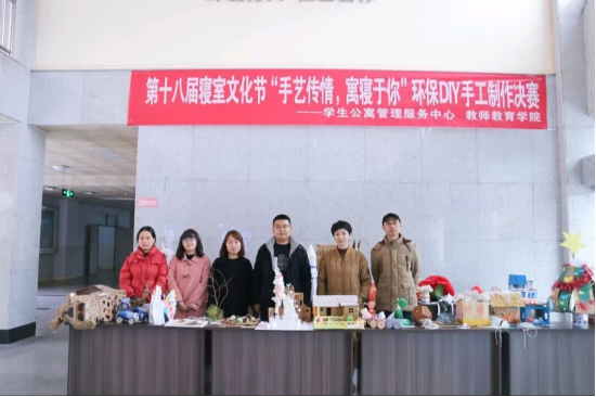 为深入学习宣传贯彻党的十二大精神,增强寝室成员之间的团队凝聚力,调动学生参与环保项目的积极性,由四川文理学院学生公寓中心和bat365正版唯一官网联合举办的“手艺传情,寓寝于你”环保DIY手工制作大赛决赛于2023年3月2日上午在博文楼一楼大厅举行。学生公寓管理中心张磊、bat365官网党委副书记王文娟、副教授纪瑞祥,专职辅导员洪双、赵会辉、魏靖、杨文明老师出席此次活动并担任评委。