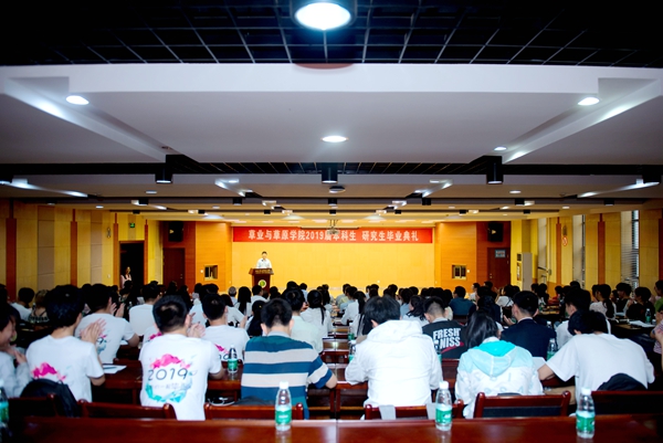 6月20日上午,学院2019届本科生、研究生毕业典礼在北校区绣山活动中心南报告厅隆重举行。学院呼天明院长、苏蓉书记、杨培志副院长、温仲明副院长、阮鹏副书记兼副院长,毕业研究生导师、班主任,2019届全体毕业生及部分在校本科生和研究生共200余人参加了毕业典礼。毕业典礼由院党总支苏蓉书记主持。