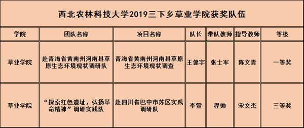 为积极引导草业学子了解国情、感知社情、体察民情,培养“一懂两爱”的学科情怀,为实施乡村振兴战略、助力脱贫攻坚、加快农业农村现代化步伐贡献青春力量,助力学校“双一流”建设。学院积极组建7支暑期“三下乡”社会实践队伍,共计50余人,于7月15日至8月23日分别赴青海省黄南州、内蒙古自治区锡林郭勒、四川省广元市、巴中市、湖北省黄冈市、陕西省西安市、延安市、咸阳市等地区开展草原生态环境现状调研、国情考察、红色寻访、校友寻访、科技支农等主题实践活动,得到了社会的高度认可与支持,取得了良好的成效。最终有2支优秀队伍通过了严格的评选,分别获得了校级一等奖和校级三等奖。